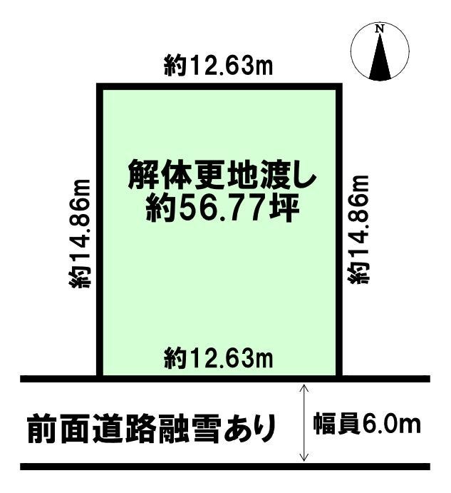 | 土地面積 | 公187.69㎡(56.77坪) | 接道 | 南側(公道)幅 約6.0m 間口 約12.63m |